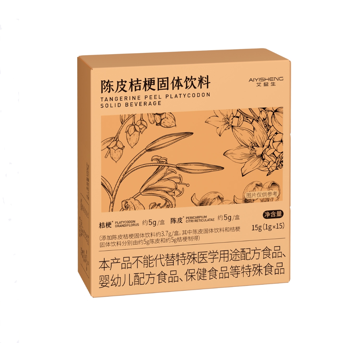 ![]() | Product Name:AiYiSheng Citrus Peel & Platycodon Root Solid Beverage Product Type:Solid Beverage Net Content:15g (1g×15 sachets) Product Size:85×24mm Package Dimensions:78×28×90mm Shelf Life:24 months |