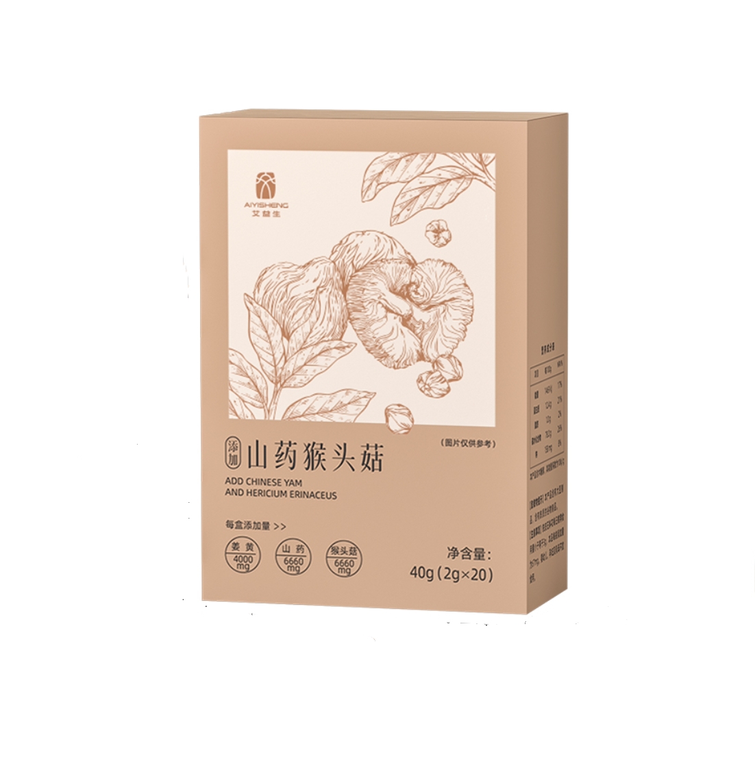 | Product Name: AiYiSheng Chinese Yam Hericium Mushroom Powder Product Type: Solid Beverage Net Content: 40g (2g×20 sachets) Product Dimensions: 24×117mm Package Dimensions: 90×130×45mm Shelf Life: 18 months |